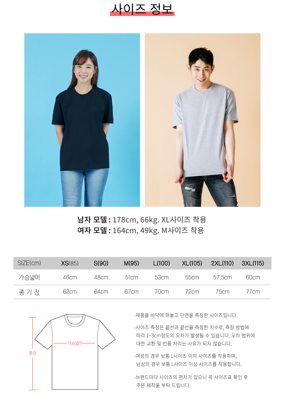 사이즈 : XS(85), S(90), M(95), L(100), XL(105), 2XL(110), 3XL(115)